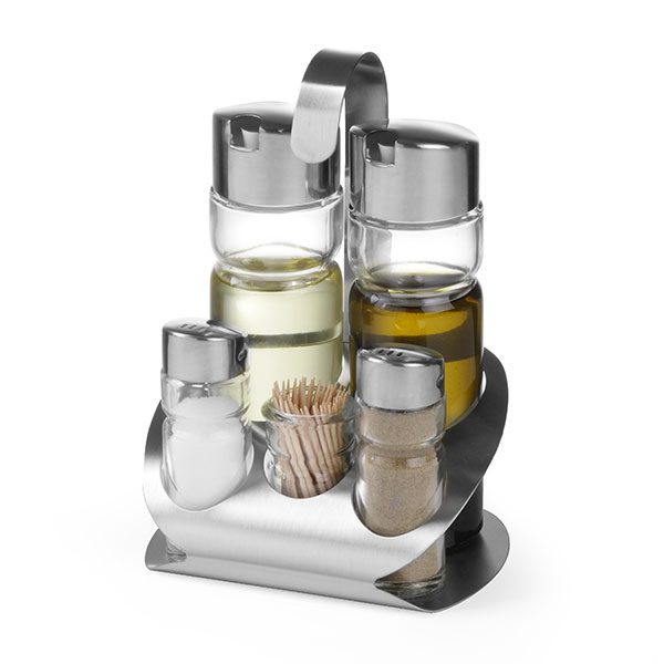 HENDI CONDIMENT SET SALT/PEPPER/OIL/VIN/TOOTHPICKS