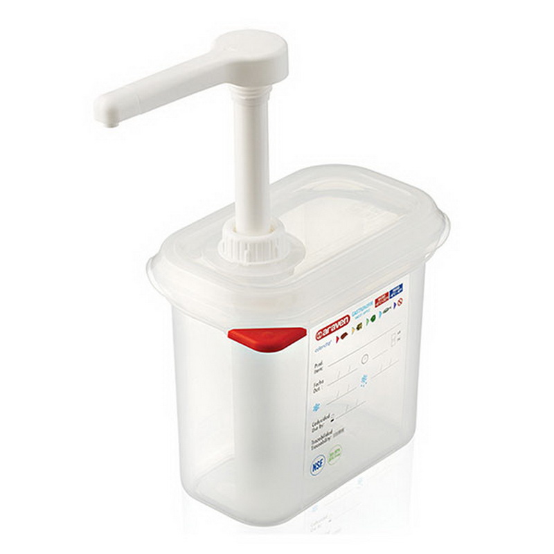 Polypropylene sauce and condiment storage container with pump GN 1/9 1.5L 17.5×10.8x19cm