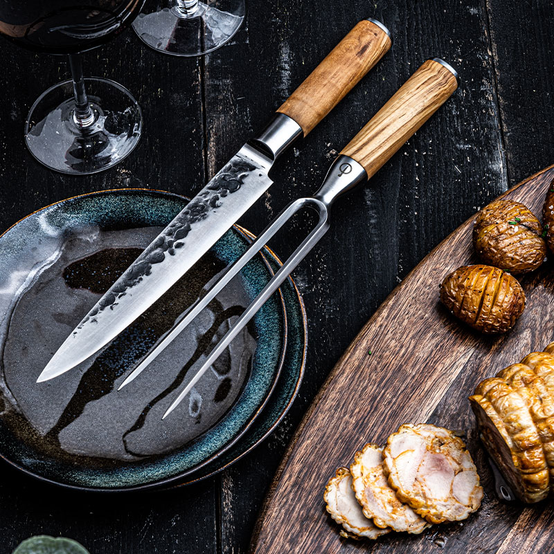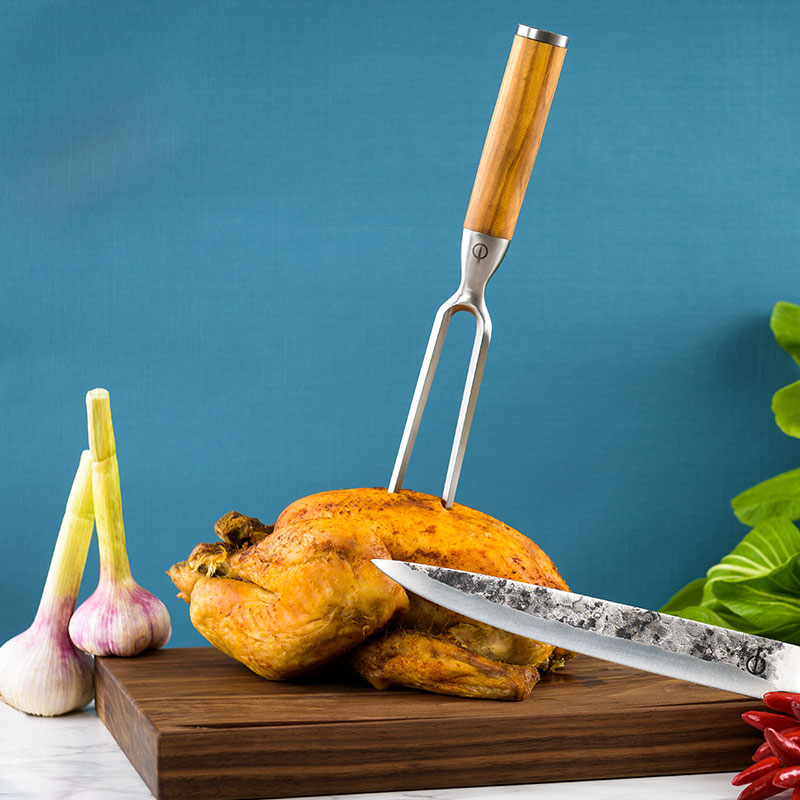 Forged Carving Fork Japanese Steel 5Cr15MoV Olive Wood Handle 19cm