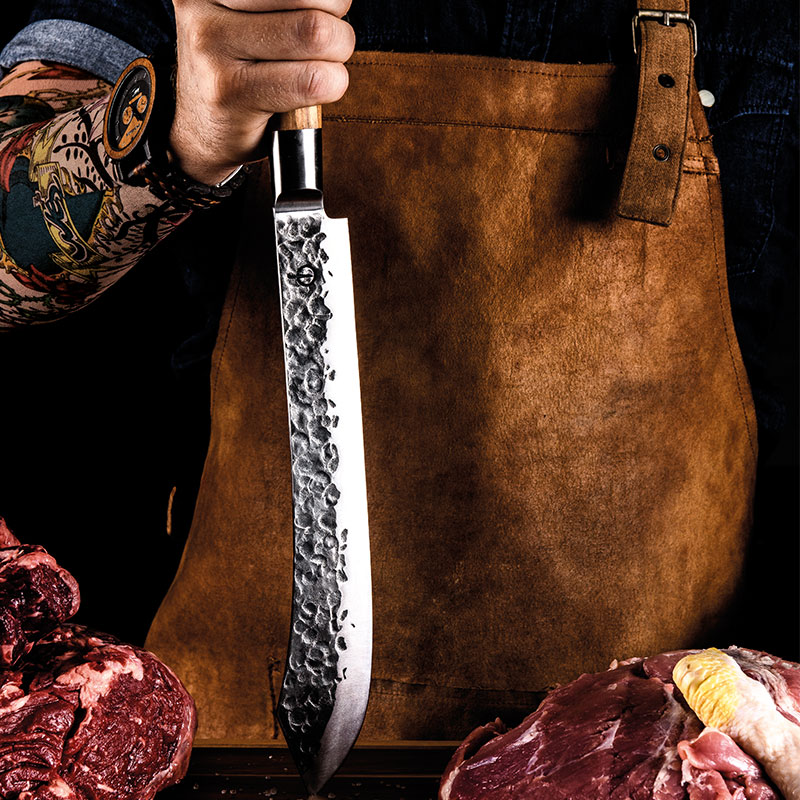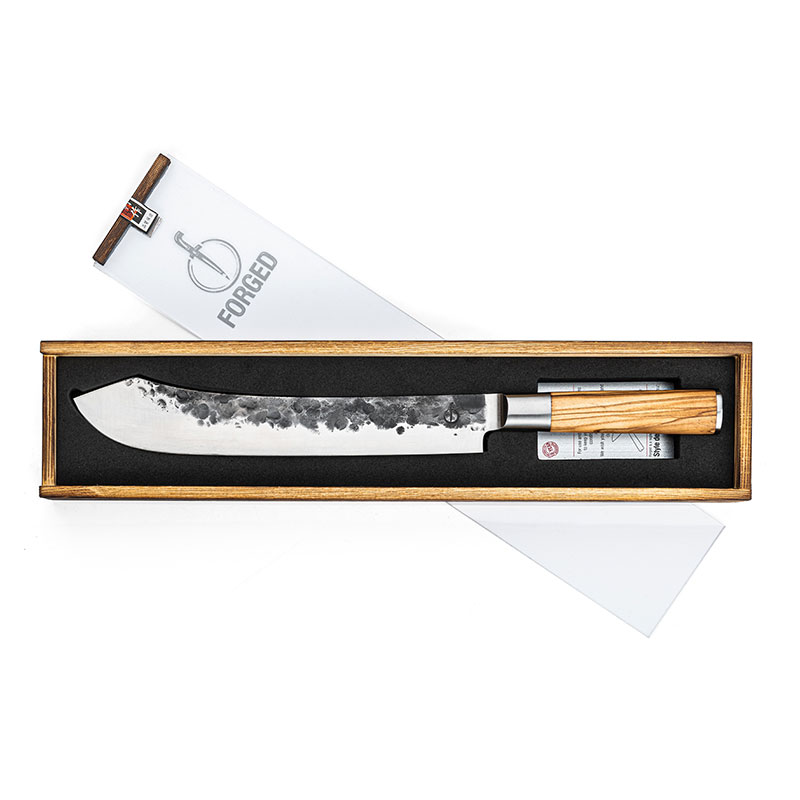 FORGED KNIFE BUTCHER JAP. STEEL 440C 25.5CM OLIVE WOOD
