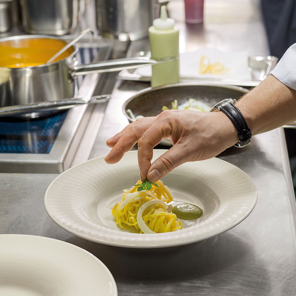 With the new material Duracream®, which is fired at 1400°C, SCHÖNWALD guarantees glaze cut resistance at the highest level. At the same time, the innovative mass ensures that GENERATION has extremely high edge impact resistance and is, of course, dishwasher and microwave safe.