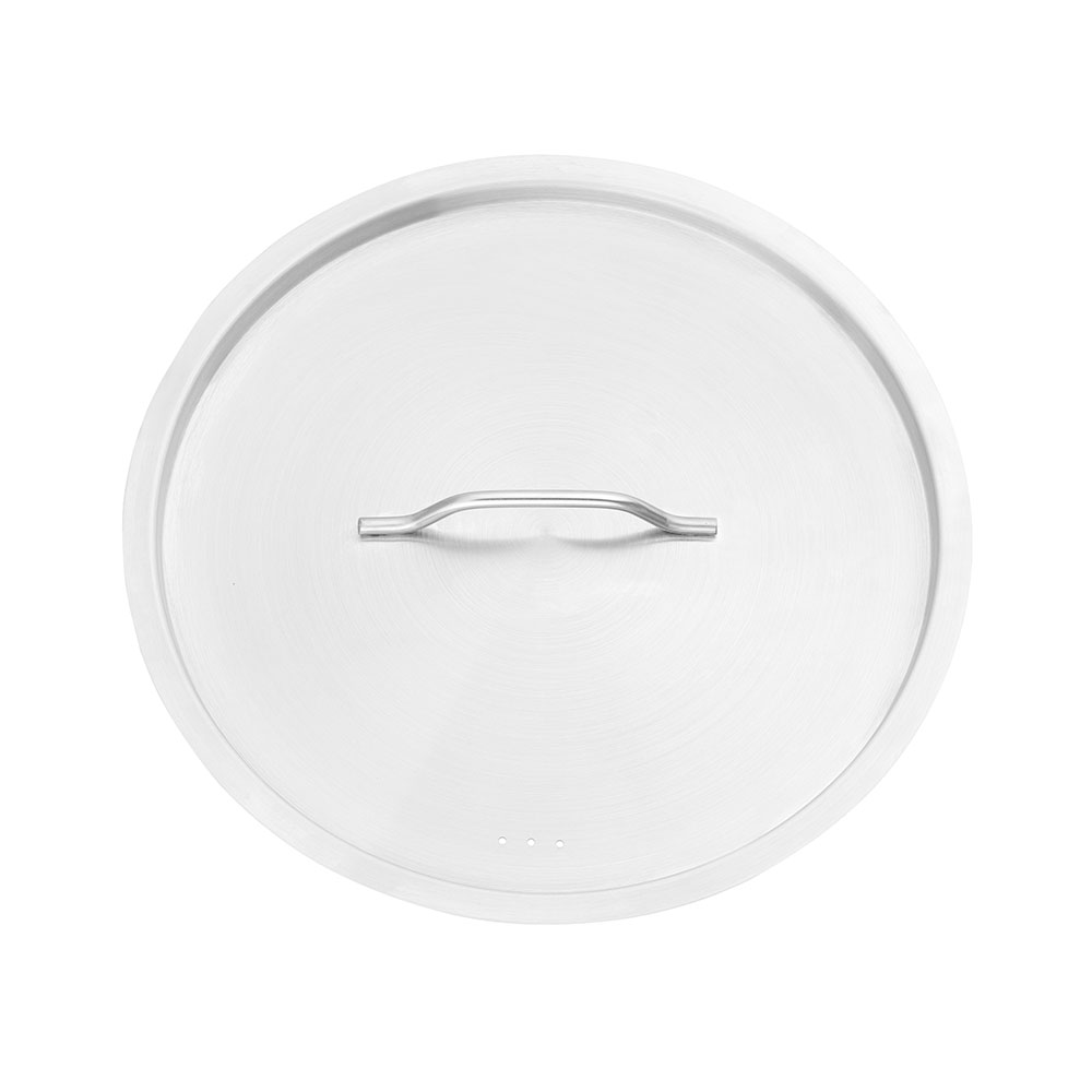 Sandwich base (stainless steel/aluminum/stainless steel) combine the heat properties of aluminum with the durability of stainless steel and the magnetic properties of chrome steel, making cooking fast, with even heat distribution with induction compatibility. The satin-finished body has riveted stainless steel handles, while the seamless base suits all heat sources. The lid includes stream release holes for controlled cooking.