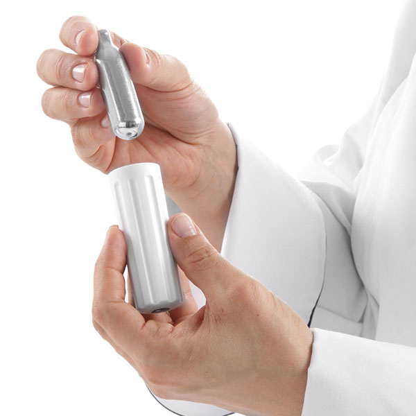 These HENDI Cream Whippers have an aluminum head and white coated aluminum bottle.