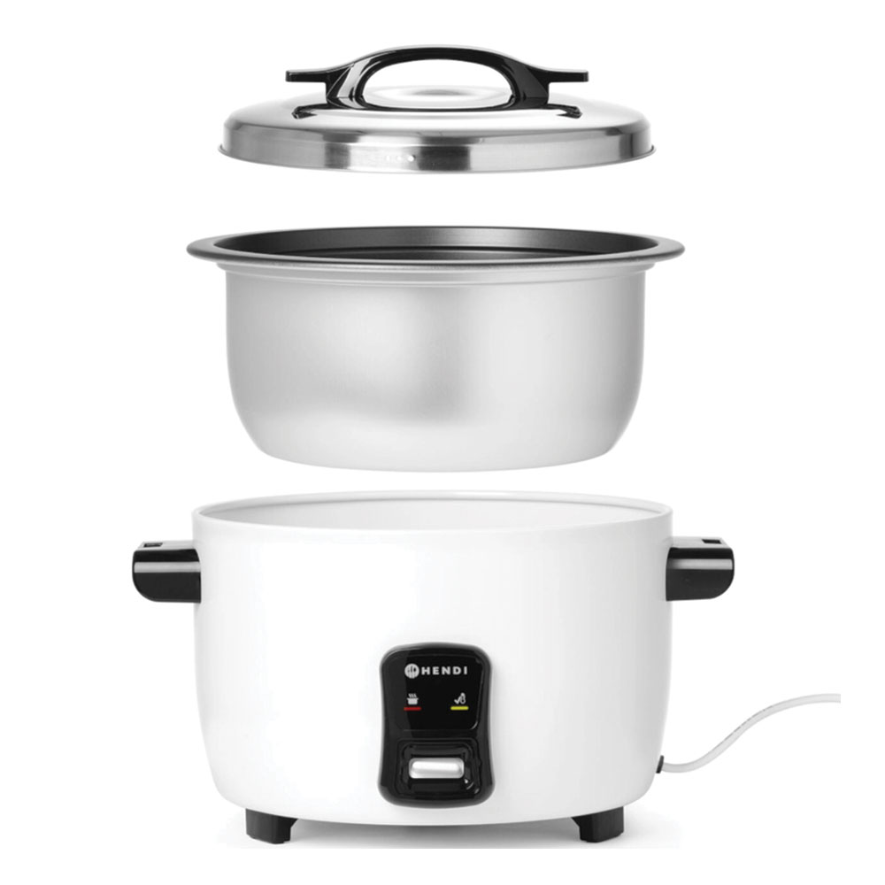 The Hendi’s Rice Cooker 10L housing is made of rolled steel painted white, easy to clean.